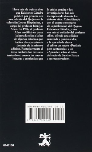 MIGUEL DE CERVANTES SAAVEDRA Don Quijote De La Mancha I / Don Quixote De La Mancha filetype pdf - Hace más de un cuarto de siglo que Ediciones Cátedra publicó por primera vez una edición del " Quijote " en la colección Letras Hispánicas, a cargo del profesor John Jay Allen. En 1986, el profesor Allen modificó en parte la introducción a la luz de algunos estudios que habían ido apareciendo después de la primera edición. Posteriormente el texto también fue revisado teniendo en cuenta las nuevas lecturas y enmiendas que la crítica erudita y los investigadores han ido incorporando durante los últimos años. Coincidiendo con el cuarto centenario de la publicación del " Quijote " , Ediciones Cátedra, y una vez más al cuidado del profesor Allen, ofrece una edición renovada y puesta al día de la obra maestra de Cervantes.I. Introducción. 1. Vida. 2. Obra. 3. El «Quijote» de 1605. 4. La crítica. 5. Esta edición. 6. Introducción a la edición renovada. 7. Siglas bibliográficas. 8. Bibliografía. 8. Lista de todas las palabras afectadas por las normas ortográficas. II. Texto y notas de «El ingenioso hidalgo don Quijote de la Mancha».